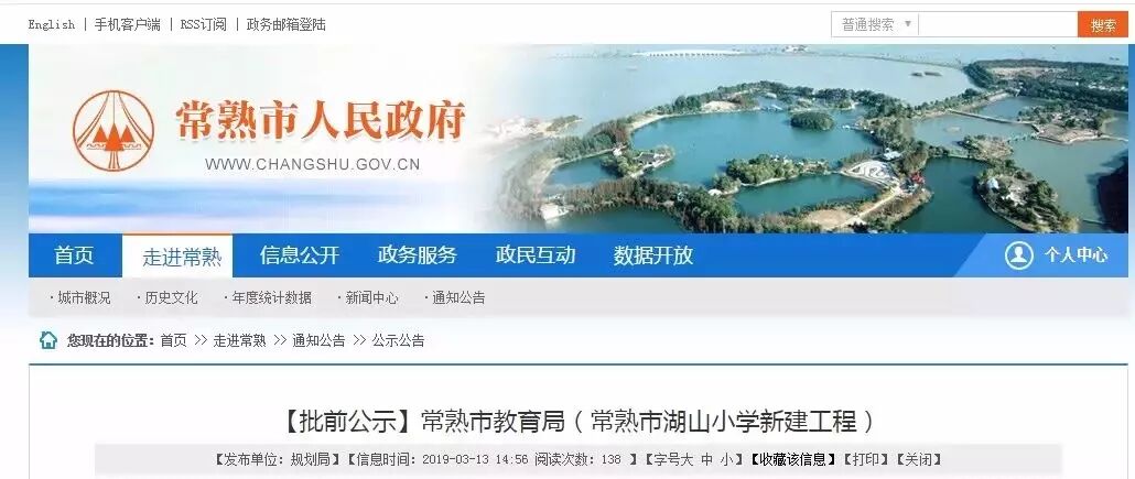 昨日(3月14日))常熟市人民政府官网发布了湖山小学的批前公示,6轨36班。湖山小学位于尚湖片区,翡翠路以南,建华路以东,总用地面积24951㎡,总建筑面积为25249.2㎡。