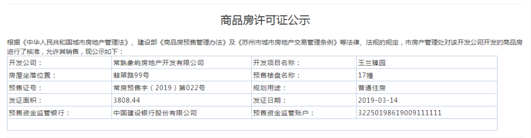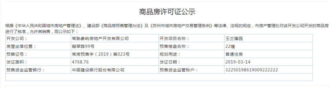 昨日第二个取得预售的楼盘是位于尚湖风景区“八大金刚”的玉兰臻园,项目位于常熟尚湖翡翠路以南,鸣翠路以东。此次拿预售的为17、22、24和25幢,也是它们第三次加推。